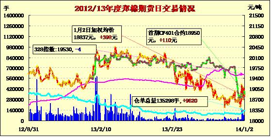 1月2日,鄭棉CF1405合約小幅高開(kāi),早盤(pán)盤(pán)中窄幅震蕩,隨后在多頭買(mǎi)盤(pán)支撐下上行,午后反復(fù)整理,終盤(pán),日線(xiàn)形成高開(kāi)陽(yáng)線(xiàn)星,日內(nèi)成交量略有回落,持倉(cāng)量增加。CF1405合約日成交51938手,日增倉(cāng)1512手,終盤(pán)持倉(cāng)量75032手;CF1409合約日成交8738手,日增倉(cāng)1022手,終盤(pán)持倉(cāng)量25746手。