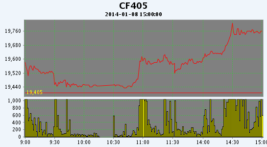 1月8日,鄭棉CF1405合約平開,早盤調(diào)整,尾盤受多頭集中買盤推動快速上行,午間在多頭集中買盤推動下上行,尾盤集中減倉放量,日線形成長陽線,日內(nèi)成交量放大,持倉量先增后減。CF1405合約日成交93818手,日減倉112手,終盤持倉量82798手;CF1409合約日成交16620手,日增倉1932手,終盤持倉量31536手。