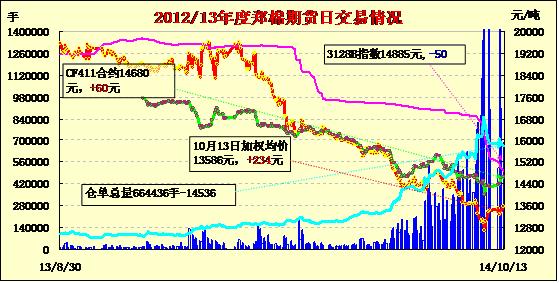 鄭棉期貨高開整理減倉續(xù)漲(10-13)