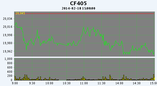 2月18日,鄭棉CF1405合約高開,盤中區(qū)間盤整,尾盤在多頭集中平倉壓制下走低,日線形成高開陰線,日內(nèi)成交量萎縮,持倉量減少。CF1405合約日成交9354手,日減倉930手,終盤持倉量73902手;CF1409合約日成交1962手,日減倉308手,終盤持倉量21840手。基本面情況:2014年1月份我國累計進口棉花29.25萬噸,本年度以來我國累計進口棉花141.64萬噸;據(jù)了解,2月上旬以來廣東黃浦、佛山、上海、張家港、青島等港口外紗的抵港量有明顯的上升跡象。