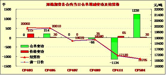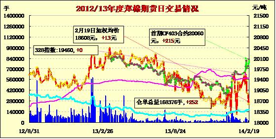 2月19日,鄭棉CF1405合約平開,早盤沖高回落后于低位盤整,尾盤在多頭買盤推動下收高,日線形成陽線,日內(nèi)成交量萎縮,持倉量增加。CF1405合約日成交77244手,日增倉214手,終盤持倉量74116手;CF1409合約日成交1488手,日減倉66手,終盤持倉量21774手?;久媲闆r:據(jù)了解,雖然近兩日ICE棉花期貨價(jià)格有所下滑,但相比1月底仍處于高位,港口現(xiàn)貨銷售仍疲弱;下游需要目前仍舊顯得清淡,由于內(nèi)外棉價(jià)差仍舊較大,東南亞市場對國內(nèi)影響仍舊較大。