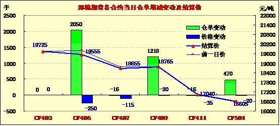 2月26日,鄭棉CF1405合約低開,早盤下滑后在多頭買盤支撐下反彈,此后橫盤整理,日線形成低開陰線,日內(nèi)成交量放大,持倉量增加。CF1405合約日成交40440手,日增倉2050手,終盤持倉量69634手;CF1409合約日成交7220手,日增倉1218手,終盤持倉量23018手。