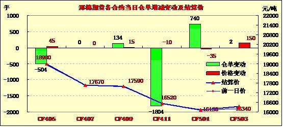 3月18日,鄭棉CF1405合約小幅高開,早盤窄幅震蕩,午后一度在空頭回補推動下沖高,但是很快受平倉盤壓制回落,日線形成陰線星,日內(nèi)成交量萎縮,持倉量減少。CF1405合約日成交6014手,日減倉504手,終盤持倉量48762手;CF1409合約日成交13364手,日增倉134手,終盤持倉量40692手?;久媲闆r:受市場預(yù)期4月之后拋儲降價的影響。企業(yè)庫存維持偏緊,等待新一輪拋儲政策;港口外棉價格維持高位,鮮有成交;另外近期紗價也有下跌趨勢。