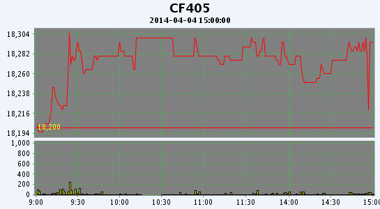 近期CF405合約當日交易走勢圖