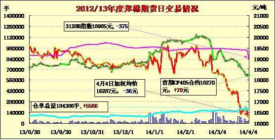 鄭棉期貨放量增倉近漲遠跌(04-04)