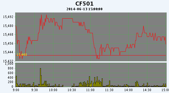 6月13日,鄭棉CF1501合約高開,早盤下探后回升,盤中高位盤整,午間增倉下滑日線形成小陰線,日內成交量變化不大,持倉量增加。基本面情況:當前因紡織淡季,不少紡織企業(yè)出現虧損關停,開機的企業(yè)棉花采購基本隨用隨買購買乏力。新棉長勢方面,長江流域在六月中旬即將進入梅雨季節(jié),降水將明顯增加,降水量過多將對棉花產生不利影響。目前全國范圍氣候適宜,溫度以及光照和適度對棉花生長基本有利,棉花長勢普遍較好。