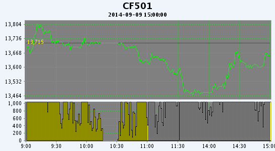 9月9日,鄭棉CF1501合約高開,早盤反彈后在空頭賣盤打壓下走低,午后創(chuàng)日低,隨后在空頭集中回補(bǔ)買盤的推動(dòng)下回升,日線形成陰線星,日內(nèi)成交量放大,持倉(cāng)量大幅減少?;久媲闆r:河北河間個(gè)別軋花廠開秤試收,據(jù)企業(yè)反映,一是為了解棉農(nóng)動(dòng)向;二是了解棉花質(zhì)量。“惜售很嚴(yán)重,根本收不上來(lái)。”昨日(4日),某400型軋花廠負(fù)責(zé)人張經(jīng)理說(shuō),他們的開秤價(jià)格是3.50-3.60元/斤,3日、4日連收兩天,僅有兩戶棉農(nóng)交售370多斤籽棉。目前棉農(nóng)與軋花廠的分歧仍然很大,棉農(nóng)對(duì)籽棉期待價(jià)格在4.0元/斤以上,一些棉農(nóng)甚至表示,現(xiàn)在種棉投入成本年年增,沒理由價(jià)格卻是年年降。新棉質(zhì)量不近如人意,綜合評(píng)定為淡點(diǎn)污棉3級(jí)居多,少量能達(dá)到2級(jí),衣分在35%-36%,水分14%-15%,籽棉之中夾雜不少灰黑棉及個(gè)別僵瓣。