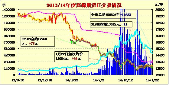 1月22日,隔夜鄭棉CF1505合約增倉(cāng)沖高,今日盤(pán)中在平倉(cāng)盤(pán)壓制下回落,日線形成星線,日內(nèi)成交量萎縮,持倉(cāng)量減少?;久媲闆r:本周安徽池州棉花企業(yè)的籽棉收購(gòu)和籽棉加工正常進(jìn)行,棉花企業(yè)的日收購(gòu)量在4萬(wàn)斤左右,籽棉的收購(gòu)價(jià)格穩(wěn)定在3.00-3.10元/斤之間,但棉花企業(yè)對(duì)籽棉的質(zhì)量要求嚴(yán)格,混雜參有雙黃棉和水分超標(biāo)棉花的一概拒收。 棉販的收購(gòu)價(jià)格穩(wěn)定在2.65-2.95元/斤之間,不試壓衣分,水分也控制在12%以內(nèi)。因棉花企業(yè)的收購(gòu)資金短缺,棉販交售籽棉不能及時(shí)得以現(xiàn)金結(jié)算,因此棉販下鄉(xiāng)收購(gòu)只能打白條,但由于近幾年出現(xiàn)過(guò)企業(yè)資不抵債后跑人的情況,當(dāng)?shù)孛揶r(nóng)不敢賒賬,即便多年的老機(jī)制販子價(jià)格出的高些,棉農(nóng)也表示沒(méi)有現(xiàn)金結(jié)算絕不賣(mài)棉花,只賣(mài)給有現(xiàn)金結(jié)賬的企業(yè)或棉販就。近期有一些周邊地區(qū)的棉販來(lái)當(dāng)?shù)孛揶r(nóng)家收購(gòu),收購(gòu)價(jià)格在2.85-2.90元/斤,比當(dāng)?shù)孛挢準(zhǔn)召?gòu)價(jià)格要低于0.05-0.10元/斤,但由于是現(xiàn)金結(jié)算,棉農(nóng)都愿意賣(mài)。