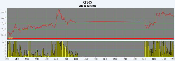 1月6日,鄭棉CF1505合約回升,今日早盤在多頭買盤推動下回升,日線形成陽線,日內(nèi)成交量萎縮,持倉量略有增加?;久媲闆r:目前南疆皮棉市場維持走貨乏力局面,阿克蘇、喀什等地區(qū)二三級棉成交13800-14000元/噸,后期皮棉低價在13500-13700元/噸,部分高價棉出現(xiàn)零星走貨,但對棉價支撐有限,終端謹慎采購態(tài)度下,棉價維持震蕩走勢。北疆市場以手采棉為主,中期二三級棉主流報價13700-14000元/噸,三級棉低價13500元/噸,僅部依靠分前期合同或老客戶走貨。機采棉庫存量較少,且質(zhì)量好的機采棉量不足,中期機采報價在13200元/噸,而后期機采普遍不足13000元/噸。下游采購謹慎,且出疆進度受春運影響減緩,維持清淡局面。