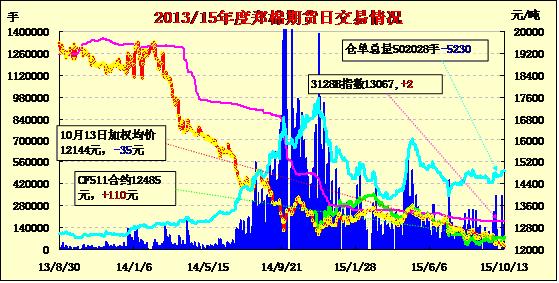 10月13日,隔夜鄭棉CF1601、1605合約盤整后下滑,今日早盤慣性下探后回升,日線形成小陽線,日內(nèi)成交量變化不大,持倉量近減遠增?;久媲闆r:據(jù)了解,考慮到2015/16年度庫爾勒、阿克蘇、喀什等棉區(qū)伏前桃、中期花普遍存在衣份高、纖維長度短(26mm、27mm長度占比50%以上)及馬克隆值C2比例高、纖維斷裂強度偏低的問題,10月上中旬以來阿克蘇、巴楚的部分軋花廠逐漸調(diào)整了收購方式,由“不設(shè)限統(tǒng)一定價收購”更改為“高品質(zhì)高價格,低品質(zhì)不收購”,針對一些植棉大戶、種植單位的纖維長度高(28mm、29mm及以上)、斷裂比強力高于28CN及以上的籽棉采取高價“包干”收購,而對于零散棉農(nóng)戶和棉花經(jīng)紀人交售的低品質(zhì)、一致性差異大的籽棉則多次檢測,明確長度、馬值、強力等指標要求,對于纖維長度低于27mm的籽棉拒收現(xiàn)象增多。