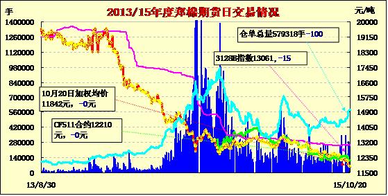 10月20日,隔夜鄭棉CF1601、1605合約反彈,今日早盤小下滑后在空頭回補與多頭買盤推動下反抽,此后區(qū)間震蕩,日線形成小陽線,日內(nèi)遠(yuǎn)月成交量萎縮,持倉量近減遠(yuǎn)增?;久媲闆r:“賣棉難,賣低品質(zhì)棉花更難”成為大部分南疆棉花企業(yè)的共識,因27mm及以下長度棉花無法配棉紡C40S及以上棉紗,主體長度27mm的棉花可以紡20支紗左右尚可,而26mm及以下長度棉花只能用于絮棉和氣流紡紗。今年南疆大部分軋花廠實行“邊收購邊加工”,垛位上幾乎不留籽棉,邊入庫邊銷售,皮棉如無法在疆內(nèi)找到客戶,立即汽運或申請鐵路運輸至倉庫,抓緊銷售、盡快回款,在出貨上絕不“拖泥帶水”。阿瓦提某棉企表示,截止10月20日,共有12個批次棉花入庫公檢,其中9個批次已汽運至內(nèi)地河南、江蘇等地銷售,毛利200-300元/噸。但后3個批次按目前市場價格約虧損300-400元/噸,在棉籽價格大幅下滑、皮棉成交價持續(xù)回落的情況,收還是不收,軋花企業(yè)普遍很矛盾。