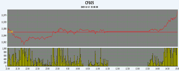 11月17日,隔夜鄭棉CF1601、1605合約下試回升,今日盤中橫向震蕩,午后增量上漲,尾盤收高,日線形成陽線,日內遠月成交量放大,持倉量近減遠增。基本面情況:11月份以來疆內棉花企業(yè)對2015/16年度國內棉價的走勢、棉花供需平衡狀況的“分岐”越來越大,銷售方式上也“大相徑庭”,有的棉企開始有目的囤積“雙28”“雙29”等21、31級皮棉(馬值為B),主動報價減少,對2128級馬值C2、3128級馬值C2、3127級等低品質棉花則全力兜售;有的棉企對2015/16年度棉花市場看空情緒依舊很濃,抓緊將棉花向內地消費區(qū)移庫,高、低等級皮棉放開銷售,先簽合同先打款的買家優(yōu)先挑貨,3128(2128)、3127級“捆綁”報價銷售的現(xiàn)象比較普遍。