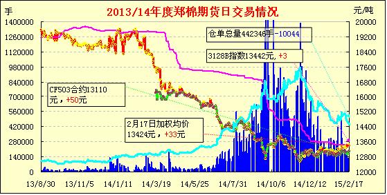 鄭棉期貨沖高收星繼續(xù)減倉(02-17)
