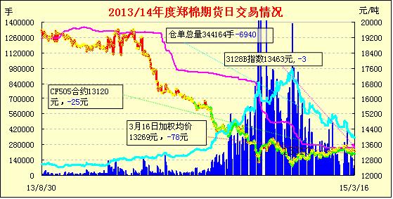 3月16日,隔夜鄭棉CF1505合約下滑,今日早盤在空頭回補(bǔ)推動(dòng)下反彈,盤中窄幅震蕩,日線形成長(zhǎng)下影線的陰線,日內(nèi)成交量放大,持倉(cāng)量繼續(xù)減少?;久媲闆r:據(jù)了解,鹽城、南通等地在上年末的籽棉收購(gòu)價(jià)格一度低迷,3級(jí)籽棉衣份達(dá)到38%的也不到3元,其原因主要是當(dāng)時(shí)的皮棉價(jià)格也處于下行趨勢(shì),而節(jié)后當(dāng)皮棉報(bào)價(jià)出現(xiàn)上行狀況后,主產(chǎn)區(qū)籽棉收購(gòu)報(bào)價(jià)也明顯跟進(jìn),而由于農(nóng)戶所持籽棉不多,市場(chǎng)交售難有起色。從目前企業(yè)報(bào)價(jià)看,縱然收進(jìn)籽棉均價(jià)達(dá)到去年開(kāi)秤之后的3.20-3.30元的水平,以現(xiàn)行市場(chǎng)上的皮棉報(bào)價(jià)測(cè)算,加上棉籽1.10元左右的報(bào)價(jià),企業(yè)經(jīng)營(yíng)效益依然可觀,何況眼下的籽棉實(shí)際報(bào)價(jià)還沒(méi)有達(dá)到去年秋冬季節(jié)的價(jià)位。所以,現(xiàn)在棉花企業(yè)最大的抱怨是有錢收不到棉花。