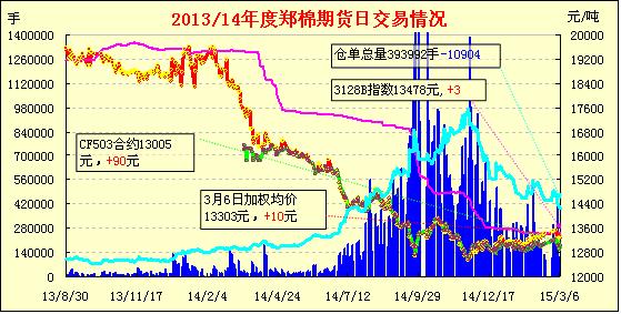 3月6日,隔夜鄭棉CF1505合約反彈,今日盤(pán)中在多頭平倉(cāng)盤(pán)壓制下回落,日線形成1/2上影線的小陽(yáng)線,日內(nèi)成交量萎縮,持倉(cāng)量繼續(xù)減少?;久媲闆r:據(jù)了解,盡管臨近棉花育苗的制缽期,但在江蘇長(zhǎng)江以北的廣大傳統(tǒng)產(chǎn)棉區(qū),卻很少看到選種、購(gòu)種、備種的農(nóng)戶。也很少看到有人從事棉花備耕的勞動(dòng)。偶爾看到一些中老年農(nóng)民在家前屋后備些地塊準(zhǔn)備育苗,卻也顯得分散零碎,懂行的人一看便知道這是棉花生產(chǎn)不景氣的狀況。