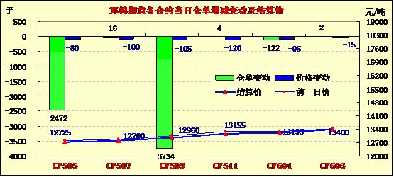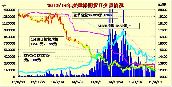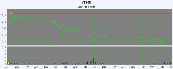 4月10日,隔夜鄭棉CF1509合約盤整,今日早盤在多頭平倉壓制下走低,隨后在空頭回補(bǔ)推動下反彈,午后窄幅震蕩,日線形成陰線,日內(nèi)成交量萎縮,持倉量減少。基本面情況:昌吉地區(qū)皮棉總體銷售基本過半,庫存占總加工量的44%左右。棉企具體銷售情況各異,銷售進(jìn)度好的已經(jīng)售罄,進(jìn)度慢的目前庫存壓力相對較大。庫存量大的棉企負(fù)責(zé)人表示目前看貨詢價的商家較多,但價格過低,影響成交。