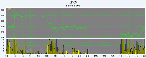 5月25日,隔夜鄭棉CF1509合約探低回升,今日早盤增倉下跌,午后在空頭回補推動下反彈,日線形成1/2下影線的陰線,日內(nèi)成交量放大,持倉量增加。隔夜鄭棉CF1601合約在空頭賣盤與平倉盤壓制下走低,尾盤脫離低點,日線形成小陰線,日內(nèi)成交量放大,持倉量減少?;久媲闆r:一直保持著江蘇棉花“半壁江山” 之稱的鹽城市,截止目前的2015年植棉面積已經(jīng)基本成形,據(jù)上周在當?shù)卣{(diào)研的國家農(nóng)業(yè)部和省有關(guān)方面的調(diào)查評估,鹽城市今年報告植棉面積為50萬畝左右,但預(yù)計實種不足,如今后的棉后移栽棉與麥后直播棉面積無實質(zhì)性增加,那么全市不會超過50萬畝棉花,這個數(shù)字是當?shù)刈疃嘀裁廾娣e的七分之一,比上年凈減50萬畝以上。