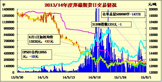 | CF603 | 13635 | 13650 | 13600 | 13650 | 13630 | 10 | 22 | -32 | 2186 | 380 | -6 |
