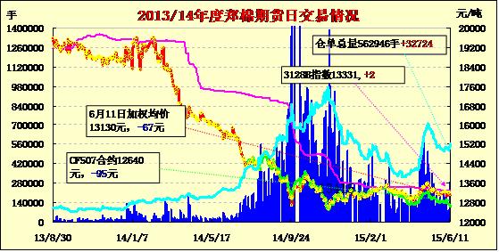 | CF605 | 13680 | 13700 | 13550 | 13580 | 13625 | -45 | 1546 | 1156 | 12824 | 5888 | 578 |