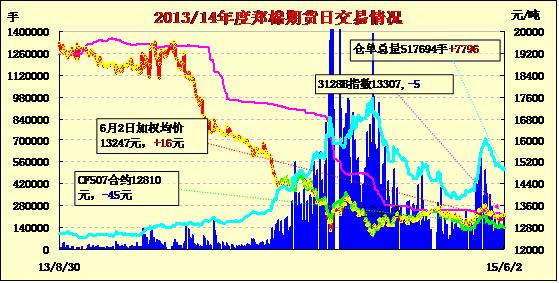 6月2日,隔夜鄭棉主要合約下跌,今日盤中低位震蕩,日線形成陰線,日內(nèi)成交量萎縮,持倉量增加。基本面情況:阿克蘇、庫爾勒、巴楚等地一些棉企反饋,截止5月底內(nèi)地赴疆商談包廠、租賃生產(chǎn)線的涉棉廠家非常少,重心轉(zhuǎn)向做經(jīng)營商。雖然一些軋花廠不再設(shè)保底收購量,一條線的承包費用也降至100萬元以下(提供農(nóng)發(fā)行或其它銀行貸款資格),但對涉棉企業(yè)而言,吸引力仍明顯不足。即使有包廠意向的企業(yè)也要求軋花廠必須上“三絲”清理機、皮清機和籽棉清理機等設(shè)備,對軋花機也比較看重。有棉企認為,2015/16年度軋花廠收購加工或又進入“高收購,低銷售”的節(jié)奏。