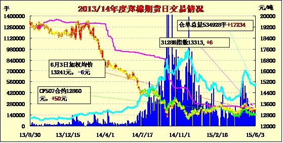| CF603 | 13635 | 13645 | 13600 | 13600 | 13625 | 0 | 36 | -12 | 2270 | 390 | -2 |