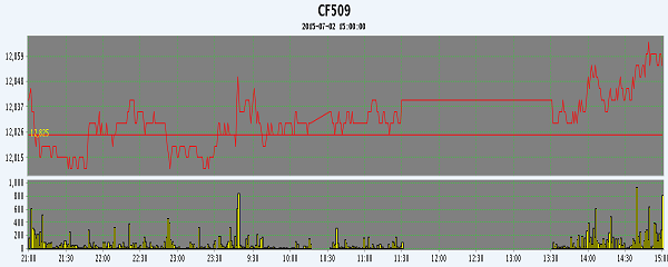 7月2日,隔夜鄭棉盤升橫向震蕩,今日早盤區(qū)間盤整,尾盤收高,日線形成星線,日內(nèi)成交量萎縮,持倉量增加?;久媲闆r:南疆阿克蘇、庫爾勒等地的棉花加工企業(yè)分析,7-9月份棉花現(xiàn)貨市場的走向非常關(guān)鍵,14200元/噸的國儲棉 競拍底價是否調(diào)整將決定2015/16年度籽棉的上市收購價格,棉花企業(yè)同棉農(nóng)、種植單位間的搏奕或比往年更 趨激烈。農(nóng)民惜售,皮棉收購、加工、銷售期拉長,棉花企業(yè)的風(fēng)險將很突出。部分疆內(nèi)棉商表示,輪儲時 間不足兩個月,下調(diào)輪出底價、國儲棉“押綁”棉花進(jìn)口配額和國儲棉外棉按一定比例搭配國產(chǎn)棉的可能性 都不大,國家以試探為主,并不以跑量為目的。