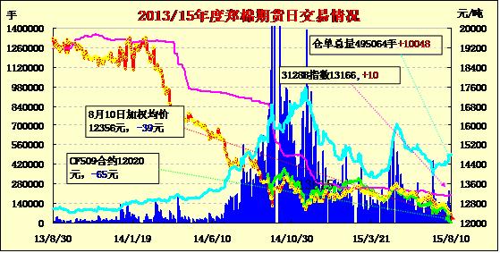 | CF509 | 12070 | 12110 | 11970 | 12000 | 12020 | -65 | 9060 | 2796 | 14371906 | 43480 | -1270 |