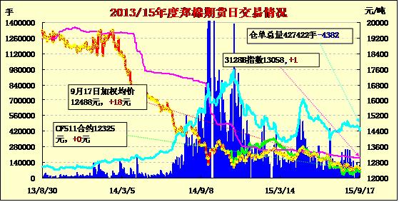 9月17日,隔夜鄭棉CF1601合約盤整,今日盤中下滑,午后一度反彈,尾盤在平倉盤壓下收低,日線形成小陰線,日內(nèi)成交量萎縮,持倉量減少基本面情況:阿克蘇沙雅某廠已購了1000噸左右籽棉,也加工出來2-3批皮棉,但給棉農(nóng)、棉花經(jīng)紀(jì)人的籽棉款不足200噸。對于該廠掛出來40衣份5.70元/公斤的收購價,棉農(nóng)普遍無法認(rèn)可,棉企雖然“三番五次”通知交售方來結(jié)算貨款,但效果很不理想;農(nóng)民、植棉單位分析,9月下旬政策貸款銀行等支持收購貸款將陸續(xù)發(fā)放到位。而阿克蘇、巴楚等地棉花資源與加工能力嚴(yán)重不批配,再加上對2015/16年度高品級、高品質(zhì)新疆棉大幅下滑擔(dān)憂,籽棉交售價或再次上漲。