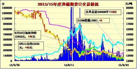 9月23日,隔夜鄭棉CF1601合約盤整,今日午后放量走高,日線形成陽線,日內(nèi)成交量放大,持倉量增加?;久媲闆r:9月21、22日南疆喀什、阿克蘇、庫爾勒三地40衣份、13%以內(nèi)水份籽棉的收購價(jià)均在5.70-5.80元/公斤(個(gè)別棉區(qū)5.85-5.90元/公斤),差價(jià)降至0.05-0.10元/公斤,較2013/14、2014/15年度的差價(jià)大幅縮小;但與棉農(nóng)、植棉單位6.50元/公斤的銷售預(yù)期仍有很大差距,因此除了少數(shù)資金比較緊張的農(nóng)民“定價(jià)”交售外,大部分棉農(nóng)籽棉“寄售”給軋花廠的熱情比較高。沙雅、新和、柯坪等地的棉農(nóng)認(rèn)為10月1--15日是籽棉的第一輪集中交售期,在軋花廠集中開秤和棉花支持收購貸款發(fā)放到位的前提下,籽棉價(jià)格和市場形勢也逐漸明朗。因此,10月15日是“寄售”籽棉比較合適的“結(jié)算日”(按15日棉花加工企業(yè)的掛牌價(jià)結(jié)帳);考慮到10月份籽棉或小幅上漲的因素,阿克蘇、巴楚等地一些自有收購資金到位的棉企紛紛通知“寄售”的農(nóng)民10月1日前到廠結(jié)算、付款。
