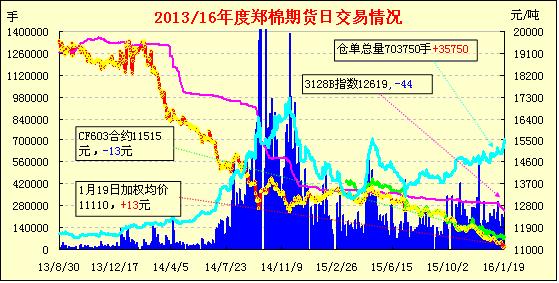 1月19日,隔夜鄭棉盤跌,今日早盤窄幅震蕩,午在多頭買盤支撐下上行,CF1605合約日線形成小陽線,CF1609合約日線形成陽線星,日內(nèi)遠月成交量萎縮,持倉量增加?;久媲闆r:1月15日以來,部分師團皮棉疆內(nèi)提貨價下調(diào)100-200元/噸,農(nóng)二師3127B級手摘棉公定報價從12800元/噸調(diào)整至12600元/噸,3127B、3128B級等機采棉報價則下調(diào)100元/噸,一方面今年兵團手摘棉定價大幅高于地方600-800元/噸,而機采棉則與地方企業(yè)僅相差100-200元/噸,因此內(nèi)地用棉企業(yè)和棉花經(jīng)營商青睞機采棉的特點突出;另一方面南疆皮棉整體銷售進度大幅落后于北疆,軋花企業(yè)3月底還貸壓力較大,再加上各方對3月份國儲棉投放市場的預期升溫,一旦國儲棉品質(zhì)、品級等指標較好,對2015/16年度新疆棉的沖擊或“致命”,因此兵團主動降價規(guī)避風險;再者,1月上旬以來,疆內(nèi)外皮棉現(xiàn)貨成交價下跌100-200元/噸,兵團報價調(diào)整只是“順勢而為”。