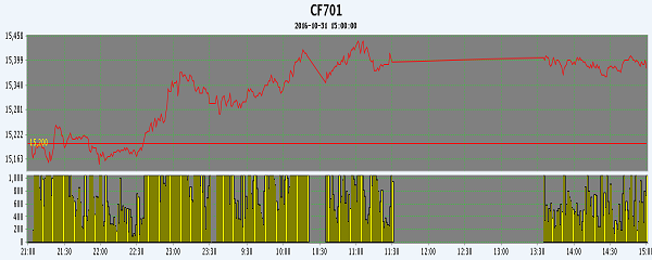 10月31日,隔夜鄭棉CF1701合約盤整后揚升,今日午前繼續(xù)上試,午后維持平盤,日線形成陽線。日內(nèi)成交量放大,持倉量增加?;久媲闆r:近期籽棉收購價格較穩(wěn)定,機采棉6.3-6.5元/公斤,手摘棉7.2-7.3元/公斤,棉籽2.4元/公斤,平均加工成本15500元/噸左右,但收購量不大,比往年同期減少一半,主要是收購價下跌,棉農(nóng)有囤棉不售的心理,還有受前期奎屯地區(qū)收購價居高不下的影響,有一部分棉花流轉到奎屯。但今年烏蘇地區(qū)的棉花品質有很大提升,尤其是機采棉,雙29與雙30的棉花占比高,馬值平均都在B2,甚至內(nèi)在指標好于手摘棉。