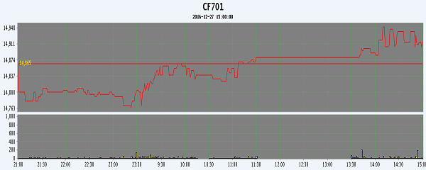 | CF701 | 14800 | 14950 | 14760 | 14915 | 14860 | -5 | 2646 | -4658 | 34884188 | 24980 | -1602 |