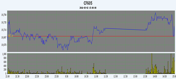 3月2日,隔夜鄭棉調(diào)整,今日早盤CF1605合約下探,隨后在空頭回補(bǔ)推動(dòng)下沖高,尾盤受平倉(cāng)盤壓制下滑,日線形成星線;CF1609合約早下探回升,午后略有上漲,尾盤下滑收弱,日線形成陰線星。日內(nèi)成交量萎縮,持倉(cāng)量近減遠(yuǎn)增。基本面情況:蘇北春節(jié)之后再續(xù)低迷的籽棉收購(gòu)市場(chǎng)在近幾天再次走低?;鶎用藁ㄐ畔Ⅻc(diǎn)的朋友打電話告訴信息員,從2月25、26號(hào)起,蘇北大多數(shù)地區(qū)的棉販和尚在經(jīng)營(yíng)中的棉企調(diào)低了棉花收購(gòu)報(bào)價(jià),正三級(jí)籽棉,衣分達(dá)到38%的收購(gòu)報(bào)價(jià)為2.50元。而其實(shí)現(xiàn)在農(nóng)戶手持存棉除非作過區(qū)分剔揀,否則現(xiàn)售棉花多為混雜棉,所以很少能夠達(dá)到三級(jí)白棉的品質(zhì)檢驗(yàn)標(biāo)準(zhǔn),因而實(shí)際成交價(jià)都會(huì)在2.50元以下。
