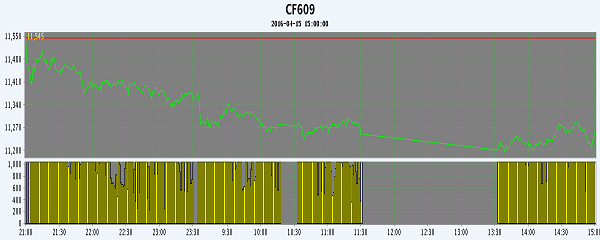 鄭棉期貨增倉下跌報收陰線(04-15)
