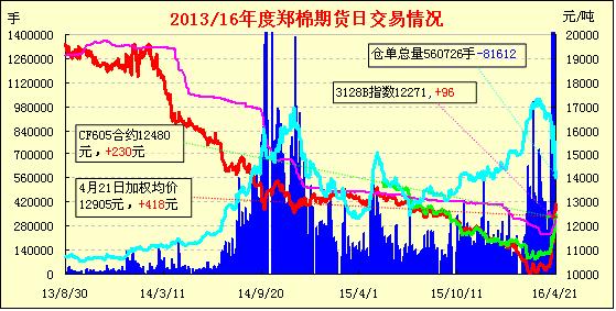 4月21日,隔夜鄭棉受國家有關(guān)部門關(guān)于拋儲言論打壓下低開,但是很快回升,盤中高位震蕩,日線形成長陽線。日內(nèi)成交量放大,持倉減少。