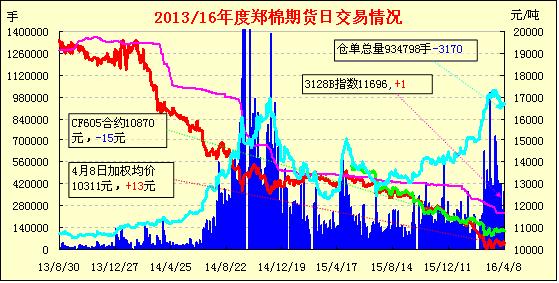 4月8日,隔夜鄭棉震蕩下滑,今日盤中橫向整理,尾盤在空頭回補(bǔ)推動下收升,CF1609合約日線形成陽線星,CF1701合約形成陰線星。日內(nèi)成交量萎縮,近月合約持倉增加?;久媲闆r:從近日南疆庫爾勒、巴楚等地棉企報價的情況來看,2128B、2129B2、3128B2、3129B2等級的棉花占比較大,但斷裂比強(qiáng)度卻基本都在27CN-28CN之間,甚至27.5CN以上都為數(shù)不多,“雙28”“雙29”皮棉供應(yīng)量越來越少。山東、江浙等地的棉紡織廠反映,目前疆內(nèi)外倉庫待售的皮棉以中后期花為主,棉纖維長度普遍在28mm以上,29mm長度也不少見,馬值B或A的比例也很高,但斷裂比強(qiáng)度偏低無法紡40S及以上支數(shù)棉紗,否則百米短頭率、張力、毛羽等指標(biāo)都難以達(dá)標(biāo)。