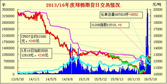 5月18日,隔夜鄭棉沖高,今日盤中在空頭賣盤與多頭平倉打壓下回落,日線形成長上影線的陽線。日內(nèi)成交量放大,持倉量近增遠減?;久媲闆r:據(jù)白銀棉業(yè)信息中心反饋,枝江少數(shù)棉農(nóng)出現(xiàn)增加植棉面積的現(xiàn)象。荊州馬山的別師傅、陳師傅分別種植20畝、30畝的棉花,比3月份預(yù)期植棉面積增加不少。陳師傅說,“今年別人減種,我就多種。”他表示今年周邊地區(qū)種植棉花的人大幅下降,下半年說不定棉花價格會上漲。同時,調(diào)查中,位于當(dāng)陽董市周湖村、七星臺李家崗、孫家崗、荊州馬山等地的棉農(nóng)反映已經(jīng)領(lǐng)到棉補,每畝153元左右。
