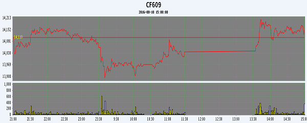 8月10日,隔夜鄭棉反彈,今日早盤增倉(cāng)下跌,隨后在空頭回補(bǔ)與多頭買盤推動(dòng)下回升,日線形成陽(yáng)線。日內(nèi)成交量萎縮,持倉(cāng)量增加?;久媲闆r:阿克蘇沙雅、庫(kù)車、巴楚等主產(chǎn)棉區(qū)的農(nóng)民反饋,8月上旬棉花進(jìn)入“現(xiàn)蕾、成鈴、吐絮”時(shí)期,因此需要水、肥和積溫都要跟上,才能提升纖維品質(zhì),鈴重增加及產(chǎn)量提升??傮w看,雖然5、6月份南疆部分棉區(qū)遭遇低溫、降雨及風(fēng)沙天氣,棉田受到一定損害,但在精心的田間管理,充足的水肥及化控調(diào)節(jié)下,棉花長(zhǎng)勢(shì)比較理想,預(yù)計(jì)9月下旬至10月上旬開(kāi)始采摘。目前沙雅等地棉株普遍長(zhǎng)至90-120厘米,果枝也達(dá)到8-10枝,農(nóng)民緊緊抓住當(dāng)前田間氣溫高是促進(jìn)棉花快速成熟的有力時(shí)機(jī),精心組織,保鈴增重、防早衰、促早熟為主。對(duì)于2016/17年度籽棉收購(gòu)價(jià)格,農(nóng)民的預(yù)期不低于7元/公斤,7-7.5元/公斤比較合理。