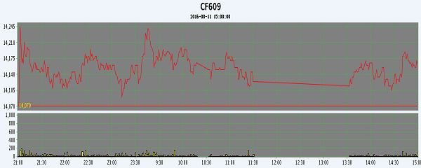 | CF609 | 14140 | 14280 | 14090 | 14165 | 14160 | 90 | 7440 | -8072 | 38464 | 38296 | -1260 |