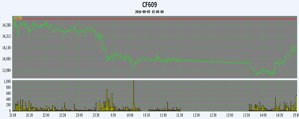 | CF609 | 14320 | 14340 | 13945 | 14125 | 14125 | -205 | 30558 | -4664 | 60023350 | 50228 | -188 |