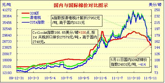國(guó)內(nèi)外棉價(jià)對(duì)比圖表(4.15-5.11)