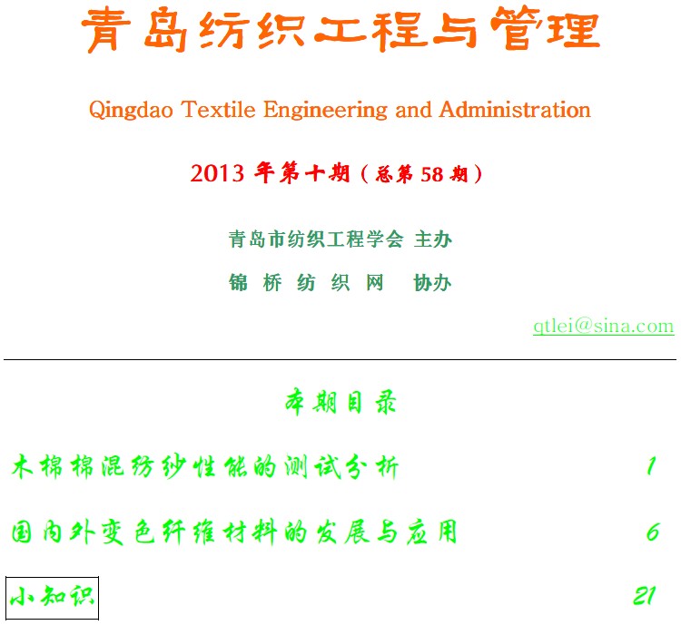 《青島紡織工程與管理》2013年第10期