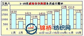 6、威海紡織集團(tuán)進(jìn)出口有限責(zé)任公司:1-10月出口1.58億美元,同比增長14.94%;