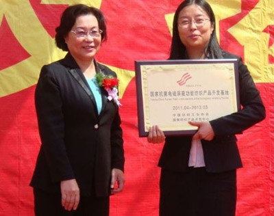 4月18日,抗菌電磁屏蔽功能紡織品開發(fā)基地授牌儀式在山東濟南天諾光電材料股份有限公司舉行,天諾正式成為國家紡織產(chǎn)品開發(fā)基地企業(yè)。中國紡織工業(yè)協(xié)會副會長張莉、山東紡織協(xié)會會長夏志林、山東省經(jīng)信委主任李建生、中國海洋航空集團公司副總經(jīng)理李忠國、清華大學材料科學與工程系教授田民波、中安基金總裁魏景芬等出席了授牌儀式。
