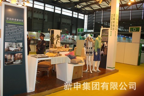 據(jù)了解,在展會上,新申集團展館以自然之綠為主色調(diào),遠遠就能感受到自然之氣撲面而來。除展出陳列的品牌以外,展館透過諸多亞麻生活的細節(jié),讓參觀的客戶能真切地感受到亞麻生活的環(huán)保品質(zhì)與舒適氛圍。從實木桌椅開始,到亞麻布椅、亞麻沙發(fā)、亞麻靠枕、亞麻抱枕等,搭配綠色的小盆栽,還原一種來自大自然原生態(tài)之景,獨具匠心的細節(jié)逐漸領(lǐng)會亞麻時代的自然感受,客人在綠色氛圍中細細品味新申亞麻所帶來的生活品質(zhì)感。