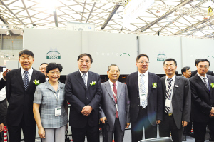 2012年6月,中國(guó)紡織工業(yè)聯(lián)合會(huì)會(huì)長(zhǎng)王天凱、副會(huì)長(zhǎng)徐文英、張延愷一行來(lái)到立信展臺(tái)前觀看產(chǎn)品,并與企業(yè)領(lǐng)導(dǎo)合影留念。圖中從左到右依次為:張延愷、賀鳳仙、王天凱、方壽林、張杰、葉茂新、徐文英。