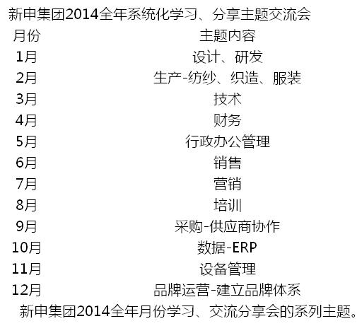 12月新申集團(tuán)將啟動(dòng)學(xué)習(xí)月活動(dòng),將構(gòu)建亞麻生態(tài)圈,建立企業(yè)文化體系納入未來(lái)企業(yè)發(fā)展戰(zhàn)略規(guī)劃。組織企業(yè)全體員工共同制定未來(lái)發(fā)展規(guī)劃、制定戰(zhàn)略目標(biāo),率先在企業(yè)內(nèi)部構(gòu)建起系統(tǒng)化的組織學(xué)習(xí)機(jī)制,融入到亞麻生態(tài)鏈與社會(huì)發(fā)展變化中來(lái)。學(xué)習(xí)研討活動(dòng)將在2014年持續(xù)發(fā)酵,形成獨(dú)特的企業(yè)文化,形成一個(gè)由每月內(nèi)容牽頭,各部門負(fù)責(zé)人負(fù)責(zé),全體員工共同參與、系統(tǒng)規(guī)劃,“總結(jié),學(xué)習(xí),分享,成長(zhǎng)”的巨大企業(yè)生態(tài)圈。