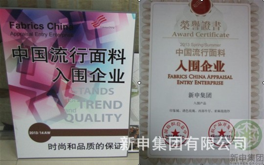 2013年,新申亞麻XinShenLinen憑借亞麻原料的優(yōu)質(zhì),時尚前衛(wèi)的設(shè)計,工藝與科技的創(chuàng)新,巧借意大利設(shè)計師之手打造出的時尚亞麻流行面料“行云流水”款,入圍“2014春夏中國流行面料“,同時奪得了“2014春夏中國流行面料入圍企業(yè)”稱號。多年來新申亞麻堅持在中國麻紡行業(yè)協(xié)會的正確領(lǐng)導(dǎo)下,不斷求實創(chuàng)新,入圍歷年“中國流行面料“已達(dá)36款,領(lǐng)銜書寫亞麻時尚面料新篇章。