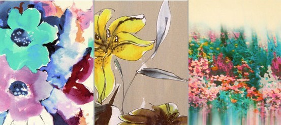現代多彩的繪畫花朵也成為印花流行趨勢重要的視覺表現形式:明與暗之間交替出現,錯落有致,生動地放映著色彩明暗、花朵原色、藝術家心靈多元重疊交替的世界,時而夸張、時而細膩、時而溫馨、時而雅致,多幾分活力與喜感,這樣的流行也讓生活中富有情趣,令人玩味?!?/p> 水彩花朵圖案