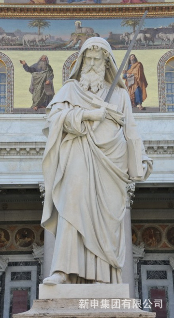 圣保羅大教堂正門的圣保羅雕像 據(jù)新加坡聯(lián)合早報(bào)報(bào)道,教皇在羅馬“城墻外的圣保羅教堂”說(shuō),教堂地板下的一座墳?zāi)箤儆谑ネ奖A_(SaintPaul)。本篤十六世說(shuō),在教堂里的這口棺材“最近是科學(xué)分析的目標(biāo)”。